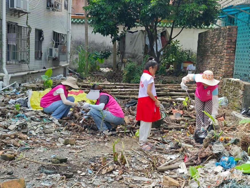 烈日炙烤下,“花姐”们戴上手套,拿起工具,深入各处卫生死角——俯身清理绿化带中、巷子里被忽视的废弃瓶罐、泡沫箱;倒掉天台上花盆托盘的积水;认真清扫公共区域散落的垃圾,清理闲置空地的杂物杂草……汗水浸透衣背,灰尘沾满双手,她们却毫不在意。在她们的带动下,许多群众也主动加入到环境整治队伍中,共同清理房前屋后的环境,协力铲除蚊虫孳生的温床,让环境焕然一新。